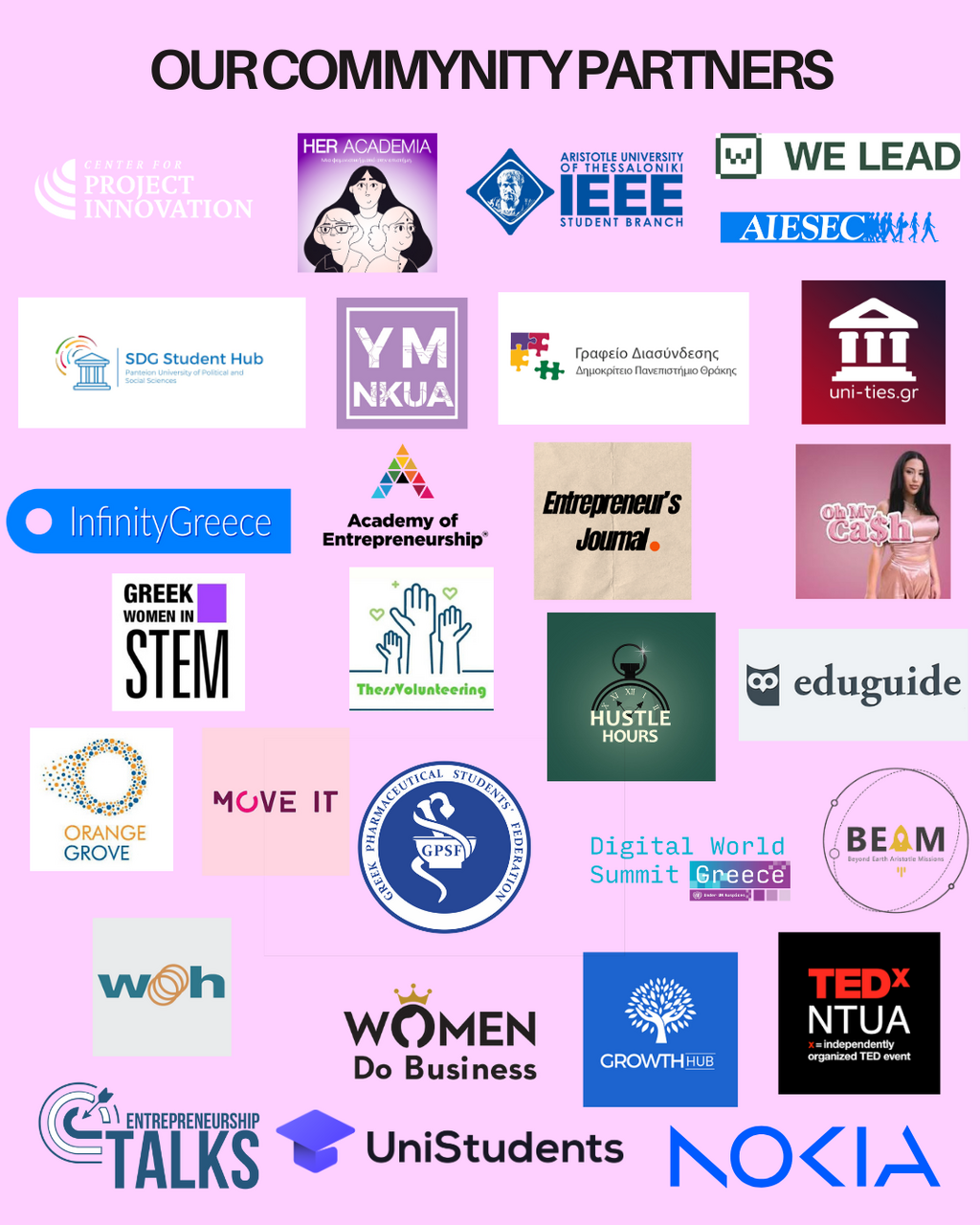 We are proud to have partnered with a growing network of prestigious organizations across Greece, Europe, and the U.S., including companies, ambassadors, embassies, foundations, and thought leaders. We also collaborate with podcasts and media platforms that amplify underrepresented voices and career stories, further expanding our impact and reach.Lorem ipsum dolor sit amet, consectetur adipiscing elit, sed do eiusmod tempor incididunt ut labore